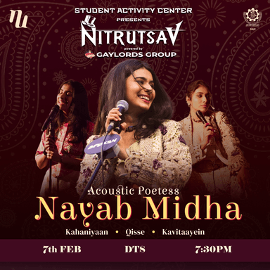 Nayab Midha is set to grace NITRUTSAV 2025! Get ready for a mesmerizing evening of soulful poetry and captivating storytelling. Don’t miss this enchanting spoken word experience!