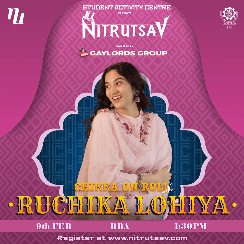 Experience an enchanting evening with Ruchika Lohiya at NITRUTSAV 2025! Her storytelling, poetry, and music will weave magic, stir emotions, and bring every verse to life.