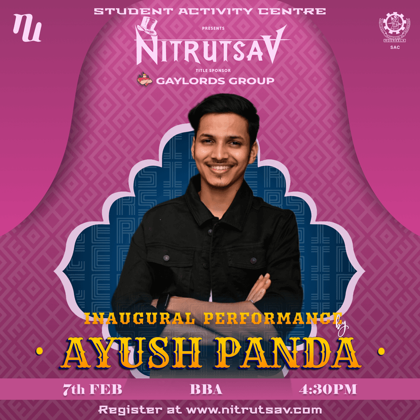 Ayush Panda is set to rock NITRUTSAV 2025! Get ready for a sensational musical evening filled with soulful melodies and electrifying energy. Don’t miss this unforgettable performance!